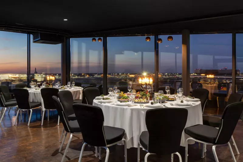 Приглашаем вас провести новогодний корпоратив в ресторане «Altitude» с панорамным видом на взлетно-посадочные полосы! У нас есть всё для незабываемого вечера: уютная обстановка, московские закаты, изысканное меню и возможность разместить до 100 человек банкетной рассадкой и 150 гостей фуршетом.